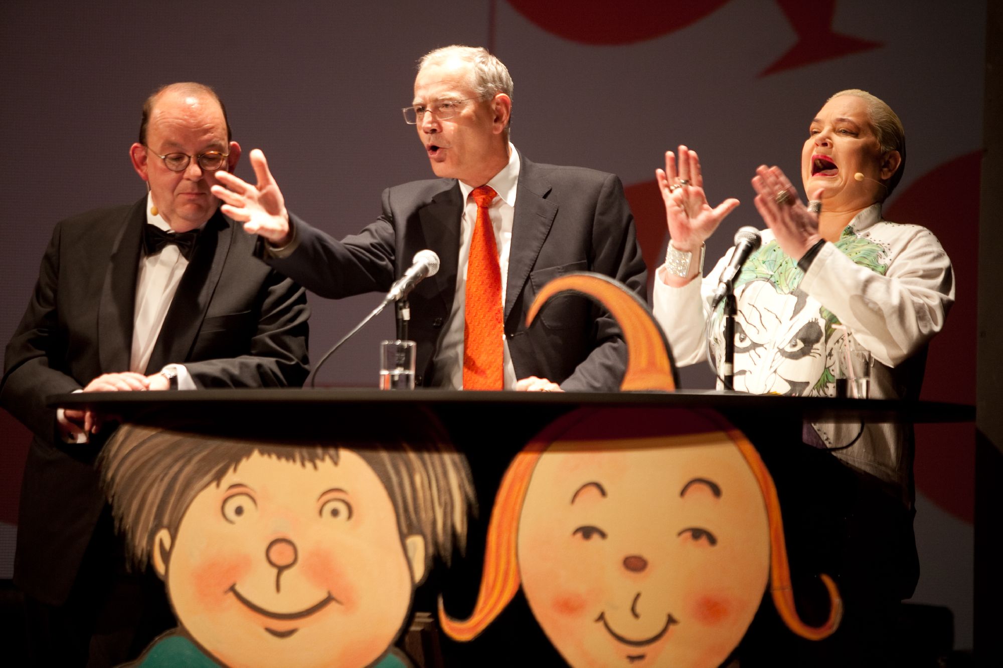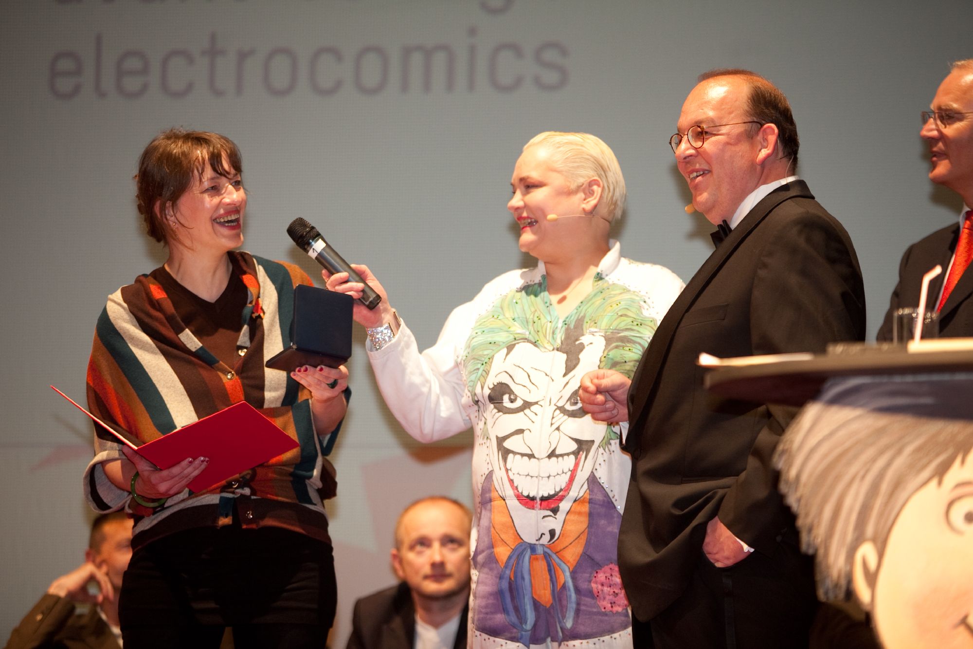 Denis Scheck, Dr. Siegfried Balleis (Oberbürgermeister der Stadt Erlangen) und Hella von Sinnen Copyright: Internationaler Comic-Salon Erlangen – Foto: Erich Malter, 2010