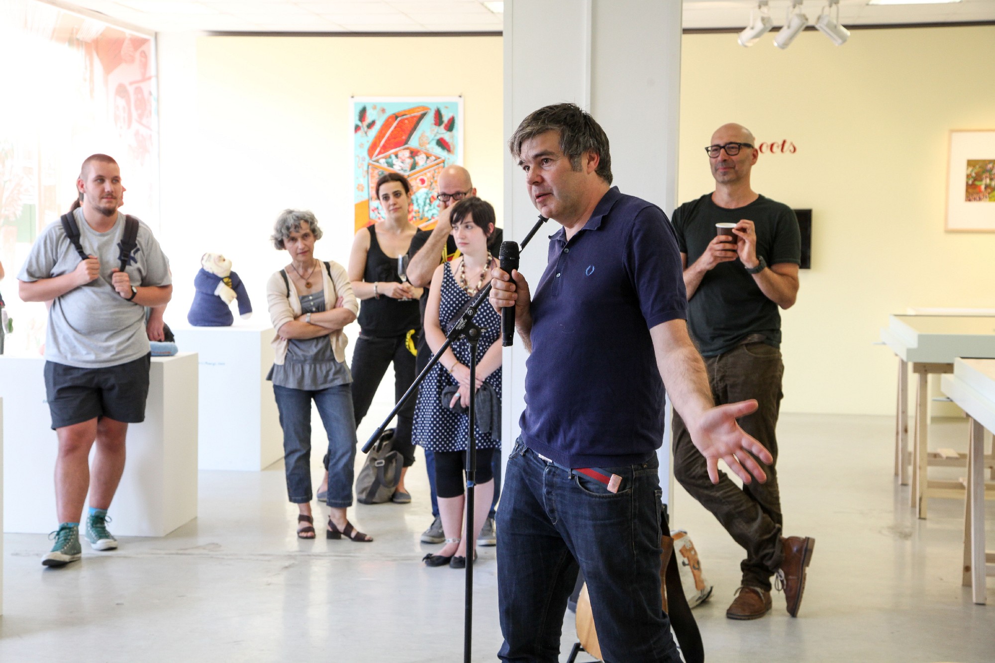 v.l.n.r.: Ralf Keiser (Carlsen Verlag), Daniela Winkler, Isabel Kreitz, Flix, Rossi Schreiber, Simon Schwartz, Luca Bartulovic, David Basler (Edition Moderne), Lorenzo Mattotti, Anja Wicki, Andreas Kiener, Jan Taussig, Dr. Dieter Rossmeissl, Hella von Sinnen, Christian Gasser