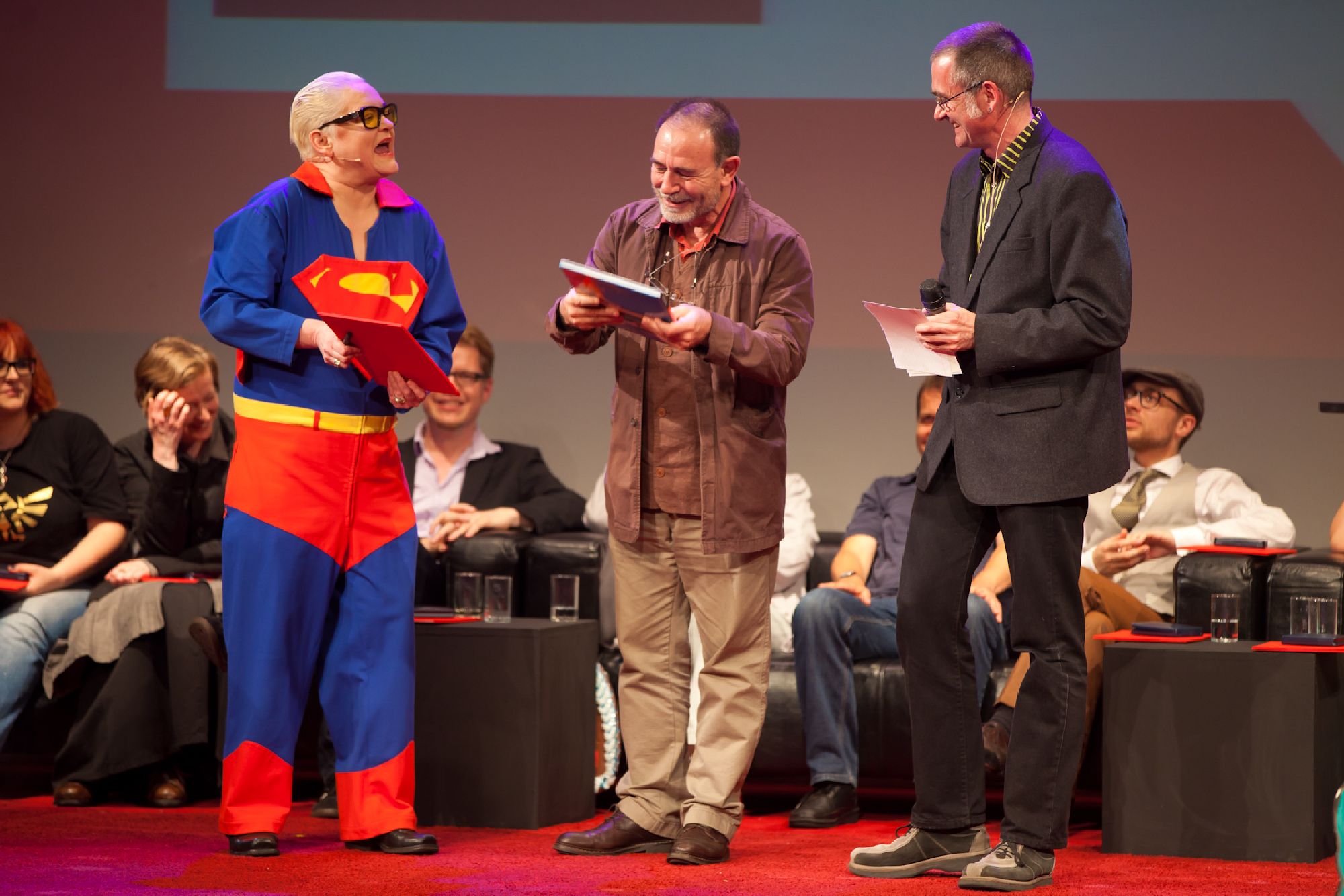 v.l.n.r.: Hella von Sinnen, Lorenzo Mattotti, Christian Gasser