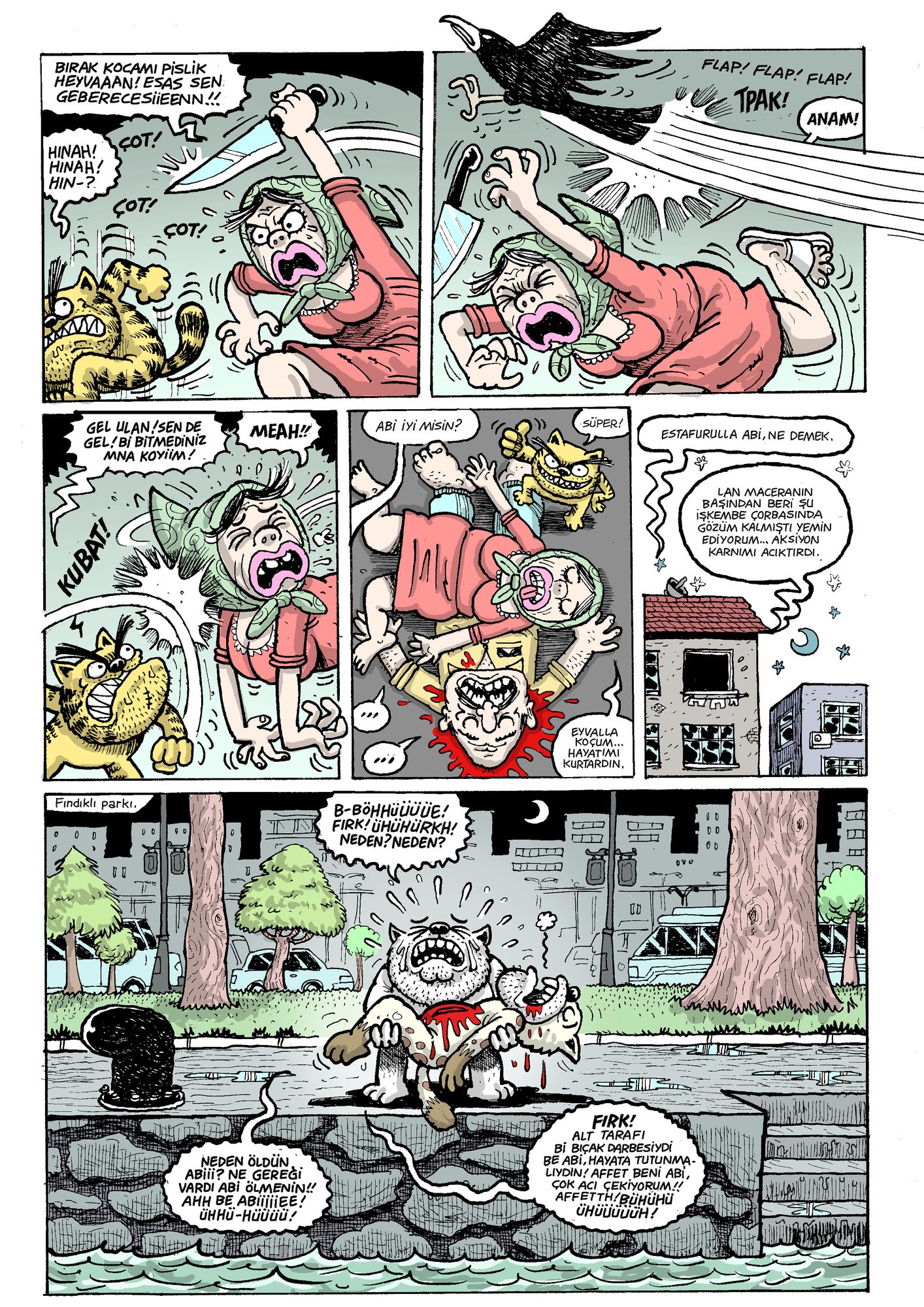 Bülent Üstün: Kötükedi Şerafettin (dt.:„Böse Katze“). Erschienen im türkischen Magazin „Hortlak“. Copyright: Bülent Üstün